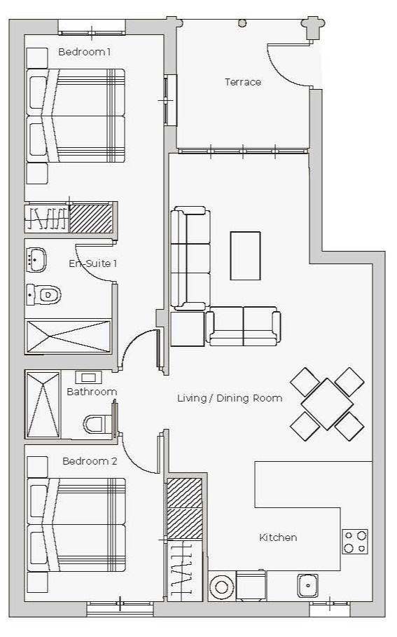 With growing demand for both short- and long-term rentals, these apartments represent a turn-key investment with excellent return potential. Owners enjoy access to resort amenities including golf, dining, wellness, and sport, all in an exclusive and secure setting.